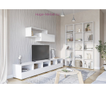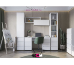 Недорогая настенная полка белого цвета с открытой и закрытой секцией с откидывающейся дверцей. Полка входит в серию мебели Хелен и подходит как для гостиной, так и для спальни или детской в том же цвете.