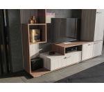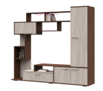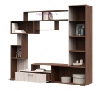 Маленькая гостиная Капри представляет собой тумбу под ТВ с пеналом и открытыми полками. Недорогая гостиная отлично впишется в небольшую комнату и решит проблему хранения книг и полезных мелочей.