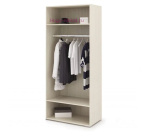 Распашной 2-створчатый шкаф без зеркала с белыми глянцевыми фасадами и штангой для одежды внутри. Шкаф входит в серию мебели для детской комнаты Симба.