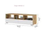 - Тумба с тремя открытыми полками и двумя ящиками, (ШхВхГ): 1402х442х460 мм;