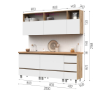 Недорогая кухня Хелен белого цвета с корпусом под дерево длиной 2 метра представляет собой готовый к монтажу комплект кухонной мебели. В стоимость кухонного гарнитура входит цельная столешница "Дуб вотан" толщиной 38 мм.  В комплект входят 6 кухонных шкафов, три верхних и три нижних, размеры  секций 40, 80 и 80 см.