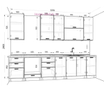 - Длина кухни: 320 см (с учетом модуля для встраиваемой плиты шириной 60 см);