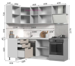- В цену кухонного гарнитура входят верхние и нижние шкафы, фурнитура, регулируемые опоры и цоколь в цвет корпуса (белый или дуб крафт). Столешница, мойка и сушка в стоимость не входят и могут быть приобретены дополнительно.