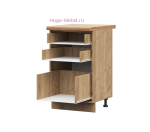 В комплектацию входит: корпус, фасад, ручки, фурнитура для сборки, пластиковые регулируемые ножки, нижний цоколь из ЛДСП. Кухонный шкаф нижний с тремя ящиками продаётся без столешницы, схема сборки кухонного шкафа в комплекте.