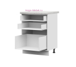 В комплектацию входит: корпус, фасад, ручки, фурнитура для сборки, пластиковые регулируемые ножки, нижний цоколь из ЛДСП. Кухонный шкаф нижний с тремя ящиками продаётся без столешницы, схема сборки кухонного шкафа в комплекте.