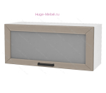 Горизонтальный кухонный стеклянный шкаф для модульной кухни Альфа с фасадом Стекло + МДФ в цвете латте. Размеры шкафа: