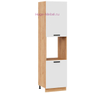 Пенал кухонный высокий с нишей для модульной кухни Призма с фасадом МДФ в цвете белый суперматовый и корпусом под дерево.