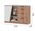 - Размеры комода (ШхВхГ): 1400х956х400 мм;