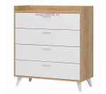 Недорогой комод с 4 выдвижными ящиками на высоких опорах. Комод шириной 93 см подходит для гостиной, спальни и детской и сочетается с другими предметами мебели серии Ирис.