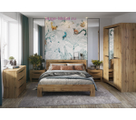 Недорогой комод с четырьмя выдвижными ящиками из серии мебели для спальни Паола. Комод в современном стиле без лицевой фурнитуры с отделкой под фактурное дерево золотистого цвета.