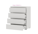 Удобный недорогой комод с 4 выдвижными ящиками на шариковых направляющих. Комод из серии мебели Хелен выпускается в двух цветах: белый и сочетание белого и дуба крафт.
