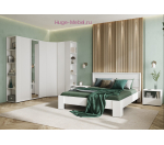 Белая двуспальная кровать продается вместе с ортопедическим основанием. Кровать входит в серию мебели Хелен и может быть куплена в составе спального гарнитура.