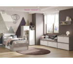 Односпальная кровать с выдвижным ящиком и дополнительными местами хранения. Современная и надежная кровать продается в комплекте с ортопедическим основанием, размер спального места 90х200 см. Кровать подходит для детской комнаты и сочетаются с другой мебелью из серии Денвер.