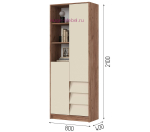 - Шкаф стеллаж с открытыми и закрытыми полками и с 3 выдвижными ящиками (ШхВхГ): 800х2100х400 мм.