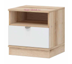 Недорогая прикроватная тумба с выдвижным ящиком и открытой полкой.