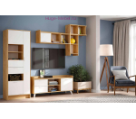 - Матовые белые фасады и корпус золотистого цвета под дерево;