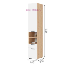 Шкаф пенал с полками, выдвижным ящиком и двумя открытыми нишами для хранения. Пенал с фасадами белого цвета и корпусом в цвете дуб сонома. Узкий шкаф пенал шириной 40 см подходит для гостиной, прихожей и спальни из серии мебели Санса. Глубина шкафа 50 см подходит для хранения большого объема вещей, две створки обеспечивают быстрый доступ к нужному отделению.