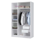 Недорогой 3-створчатый шкаф для одежды со штангой, полками и с двумя ящиками внутри. Современный шкаф белого цвета без зеркал с черной ручкой. Шкаф можно укомплектовать антресолью высотой 40 см.