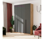 Вместительный 4-створчатый шкаф для одежды со штангами, полками и с двумя ящиками внутри. Современный шкаф серого цвета без зеркал с черной ручкой. Шкаф можно укомплектовать антресолью высотой 40 см.