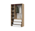 Вместительный 3-х створчатый шкаф с тремя выдвижными ящиками, ширина шкафа 120 см. Внутри шкафа 2 отсека: отделение со штангой для одежды на плечиках и отделение с полками. Выдвижные ящики на шариковых направляющих полного выдвижения. Шкаф входит в серию мебели Хелен и может быть дополнен пеналом, комодом или стеллажом в том же стиле. Мебель Хелен выпускается в двух цветах: полностью белом и сочетании белого и дуба крафт.