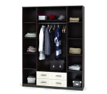 Недорогой распашной шкаф с выдвижными ящиками подходит для прихожей или спальни. Шкаф Квадро с 4 дверцами и выдвижными ящиками вмещает большой гардероб. Несмотря на невысокую стоимость, шкаф отличается отличным качеством и продуманным наполнением. Внутри шкафа три отделения: два отсека с полками по бокам и отделение со штангой для одежды по центру.