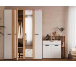 Недорогой четырехстворчатый шкаф для одежды с зеркалами. Внутри шкафа три отделения: два отсека с полками слева и справа и центральный отсек со штангой для одежды на плечиках и двумя полками. Шкаф шириной 160 см с фасадами белого цвета и корпусом под дерево. Шкаф можно дополнить другой мебелью для спальни, гостиной и прихожей из серии Санса.