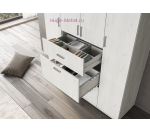 Вместительный шкаф с крупногабаритными выдвижными ящиками, полками и штангами для вещей на плечиках. Внутреннее пространство верхнего выдвижного ящика разделено на три секции для удобства хранения. За верхними дверцами расположены полки, за боковыми створками - штанги. Серия шкафов Нельсон представляет собой универсальную систему хранения с высокими шкафами разного размера.