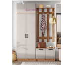 Шкаф шириной 80 см с фасадами в цвете кашемир и корпусом под дерево. Узкий шкаф глубиной 38 см подходит для прихожей Машенька в том же цвете. Внутри шкафа полки и выдвижная штанга для одежды. Высоту шкафа 202 см можно увеличить за счет антресоли. Шкафы для прихожей Машенька выпускаются фабрикой в нескольких цветах, в том числе в классическом сочетании венге и дуба, с серыми фасадами графит и светлыми фасадами кашемир.